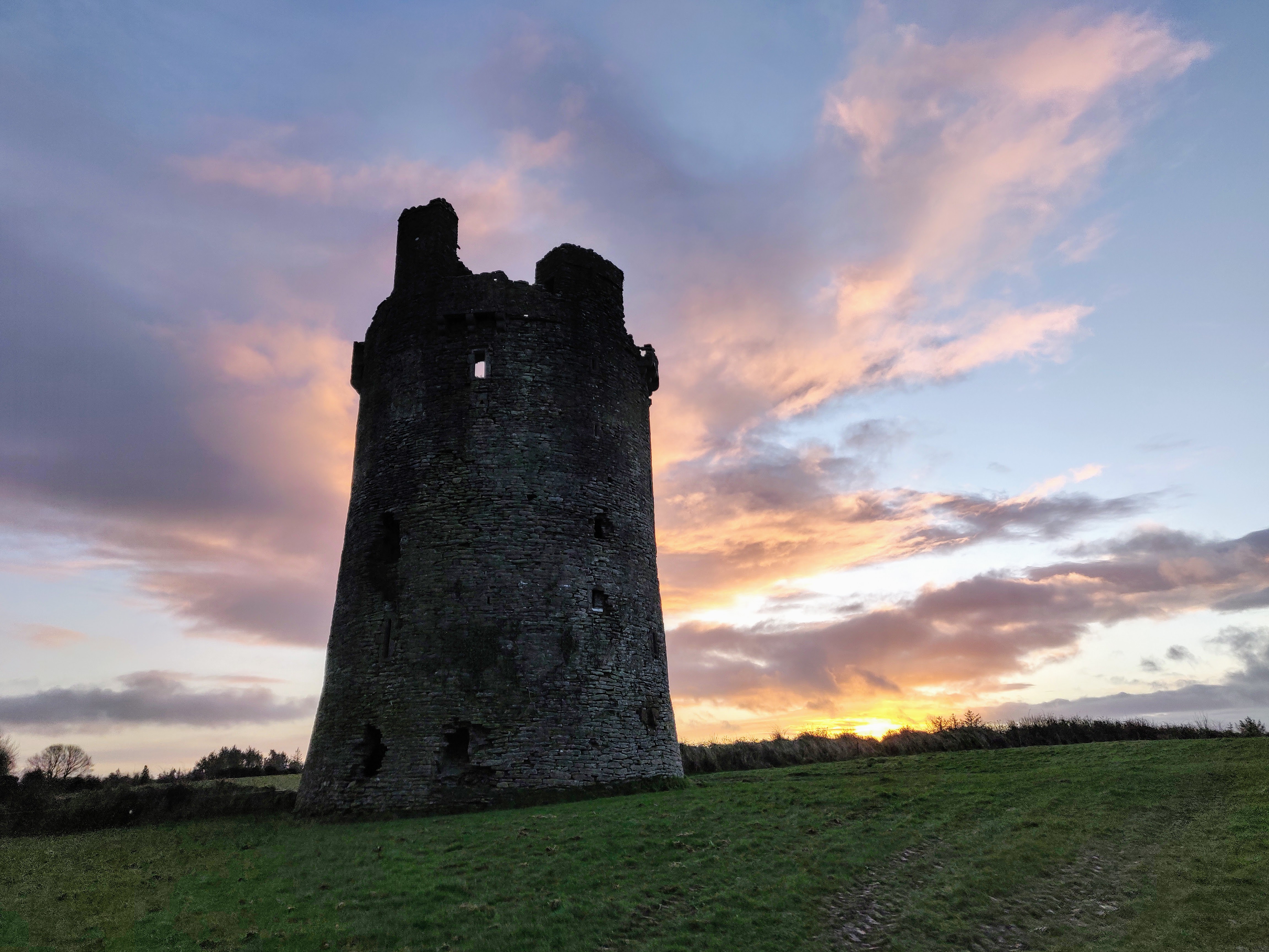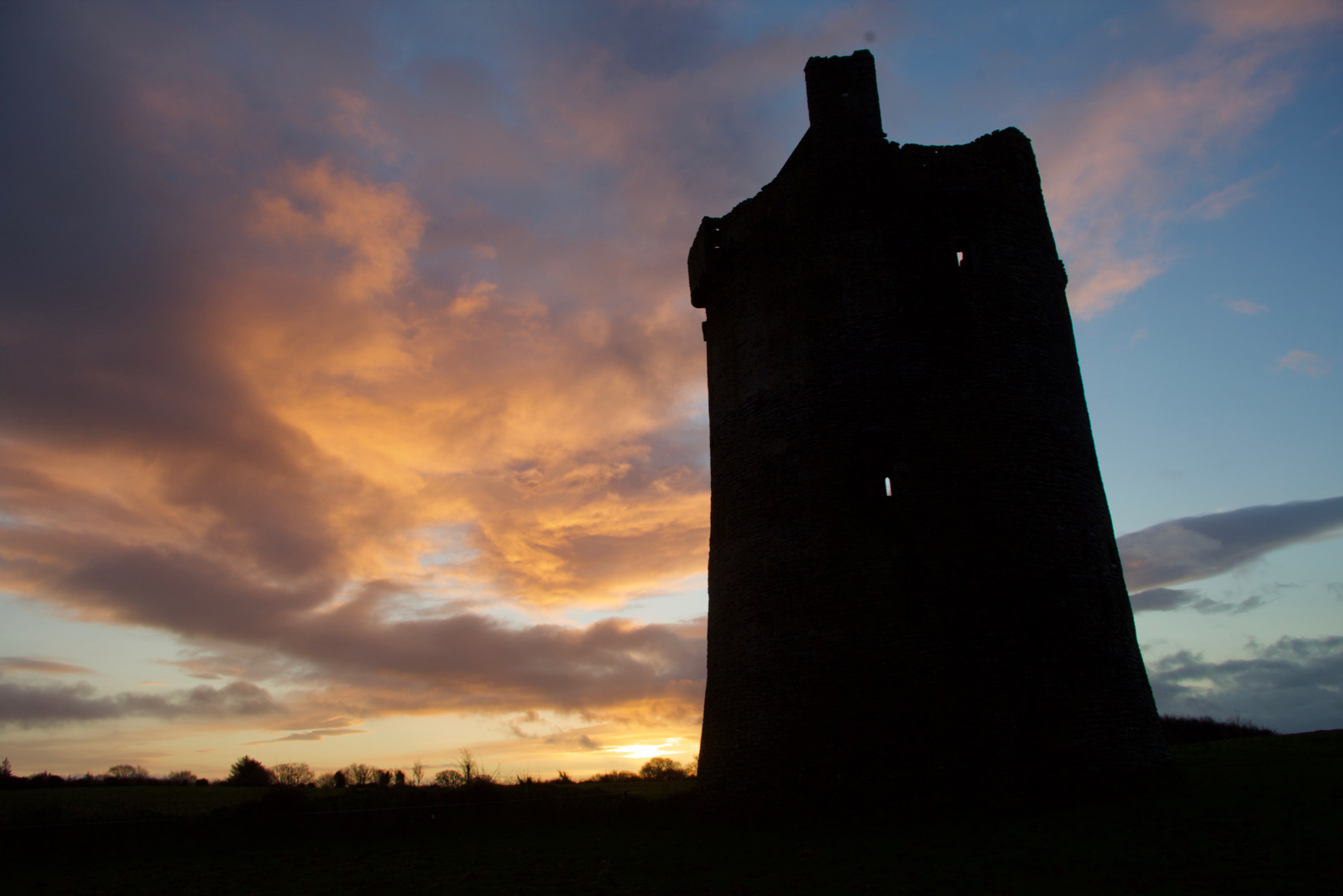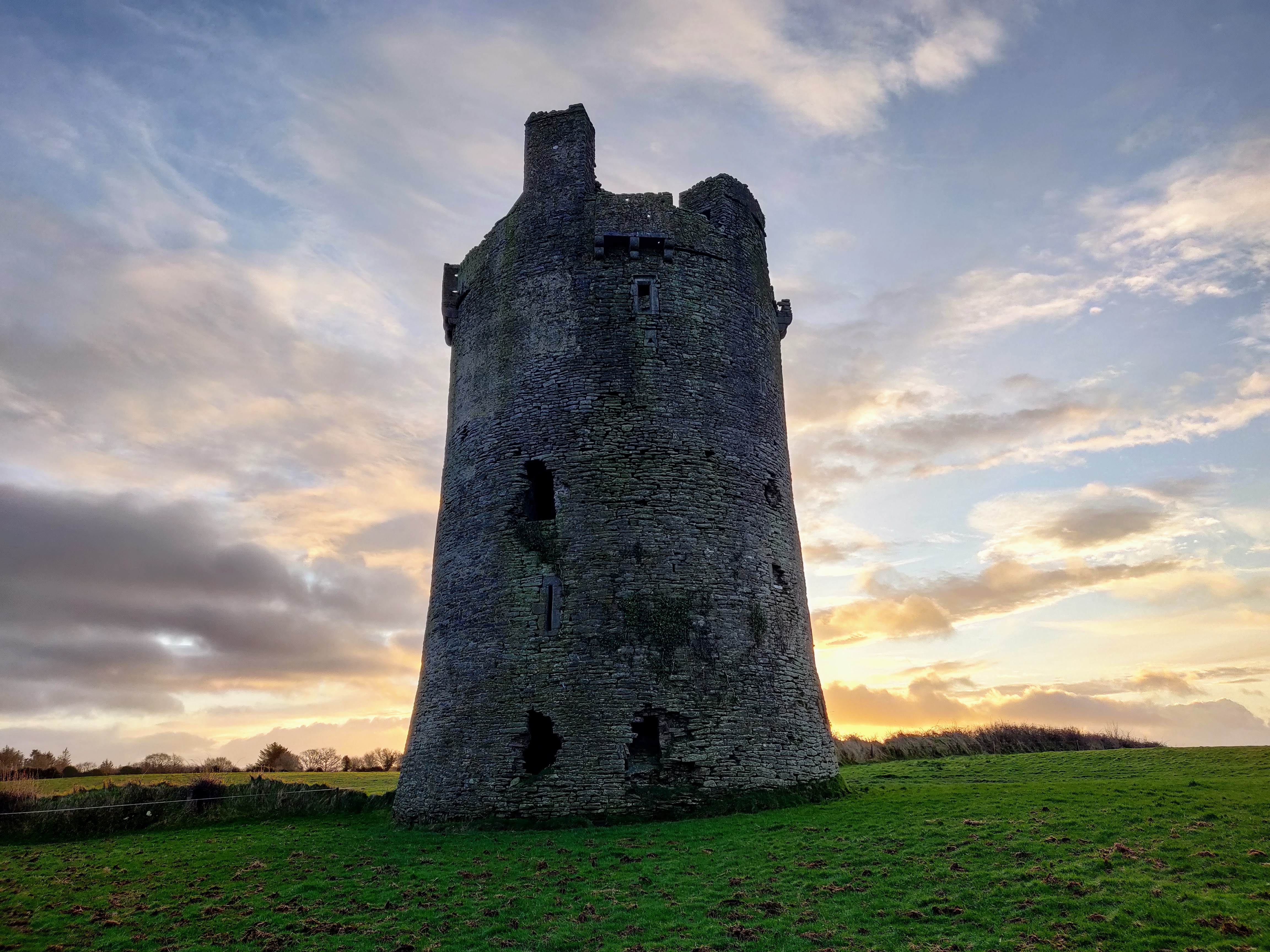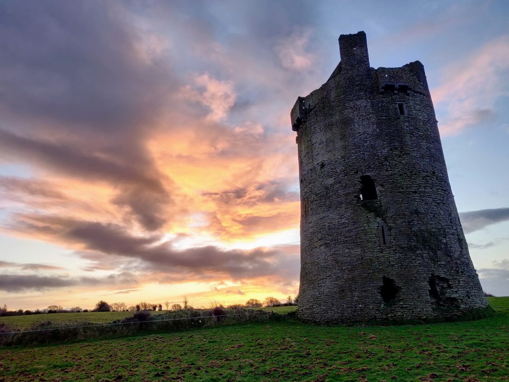 The best preserved of the castles I visited (Killenure was closed). I was very lucky with the timing of the sunrise. I had spent the night wide awake on an aeroplane…