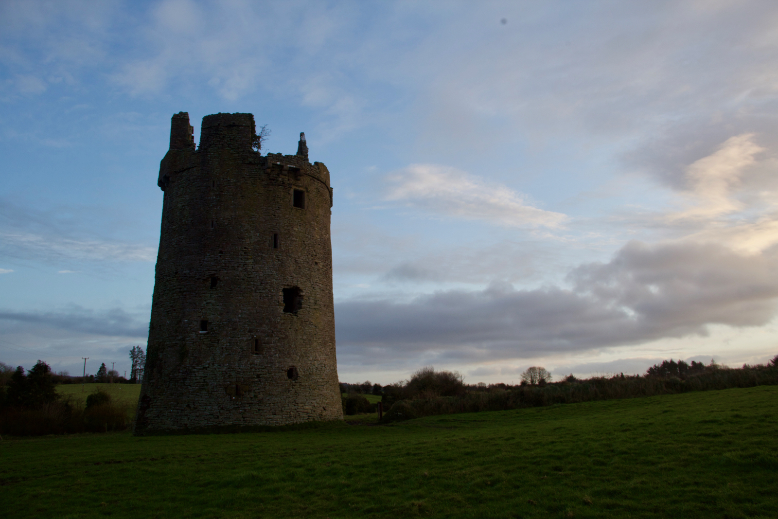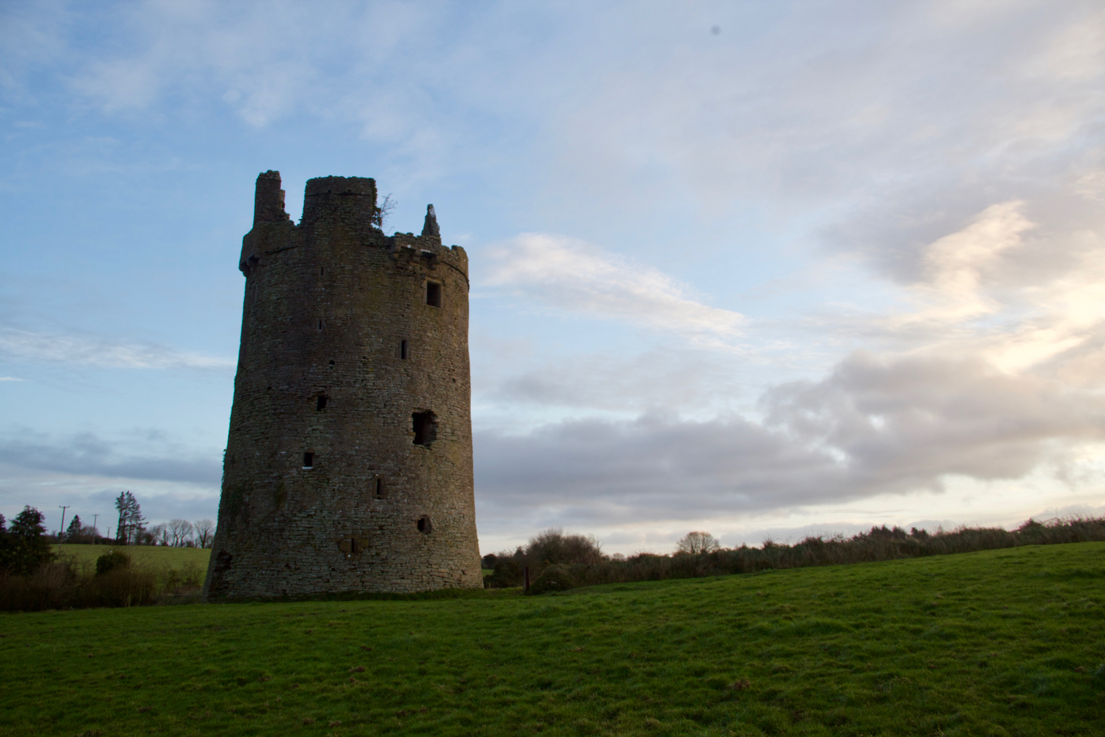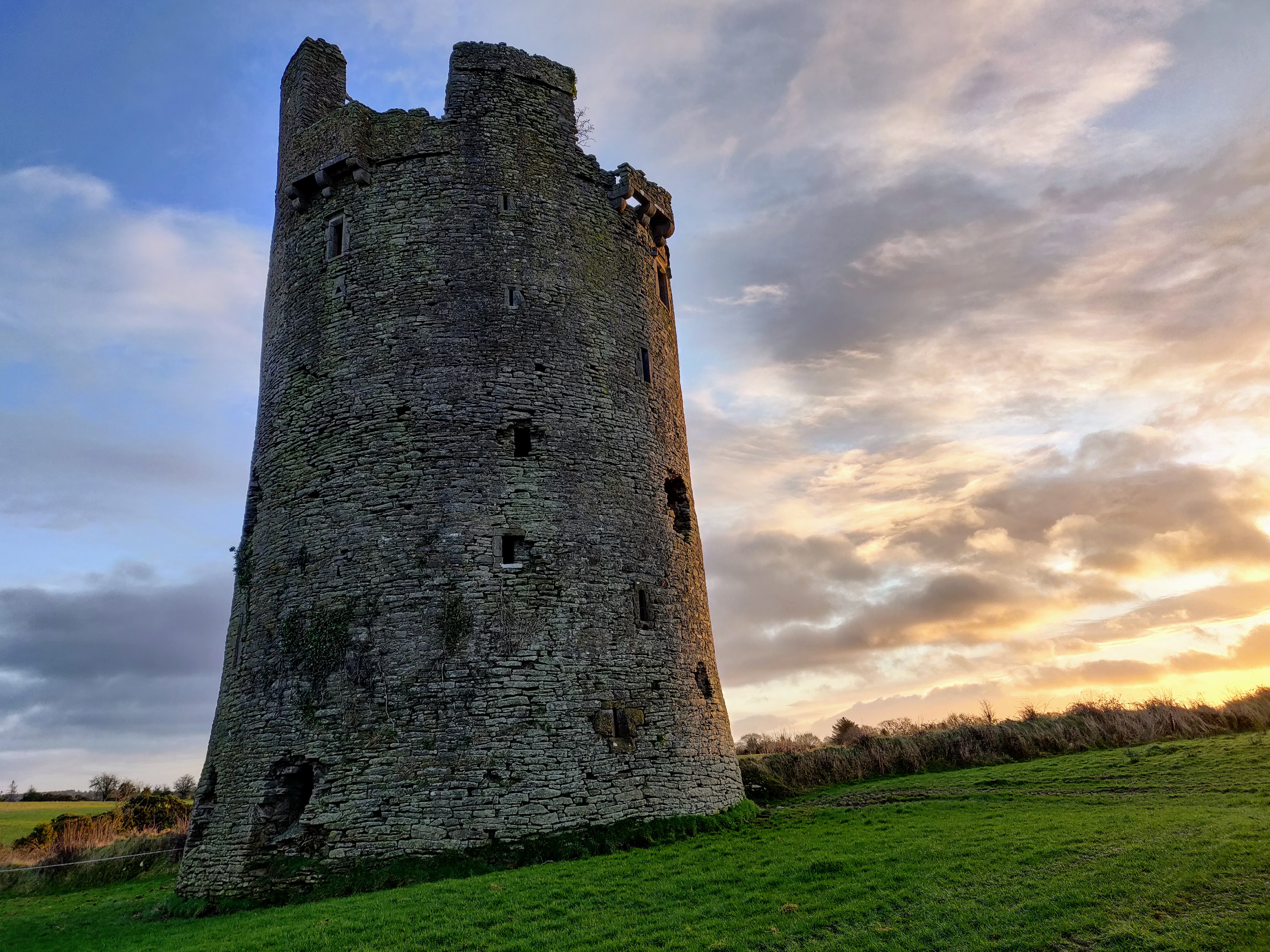 The best preserved of the castles I visited (Killenure was closed). I was very lucky with the timing of the sunrise. I had spent the night wide awake on an aeroplane…