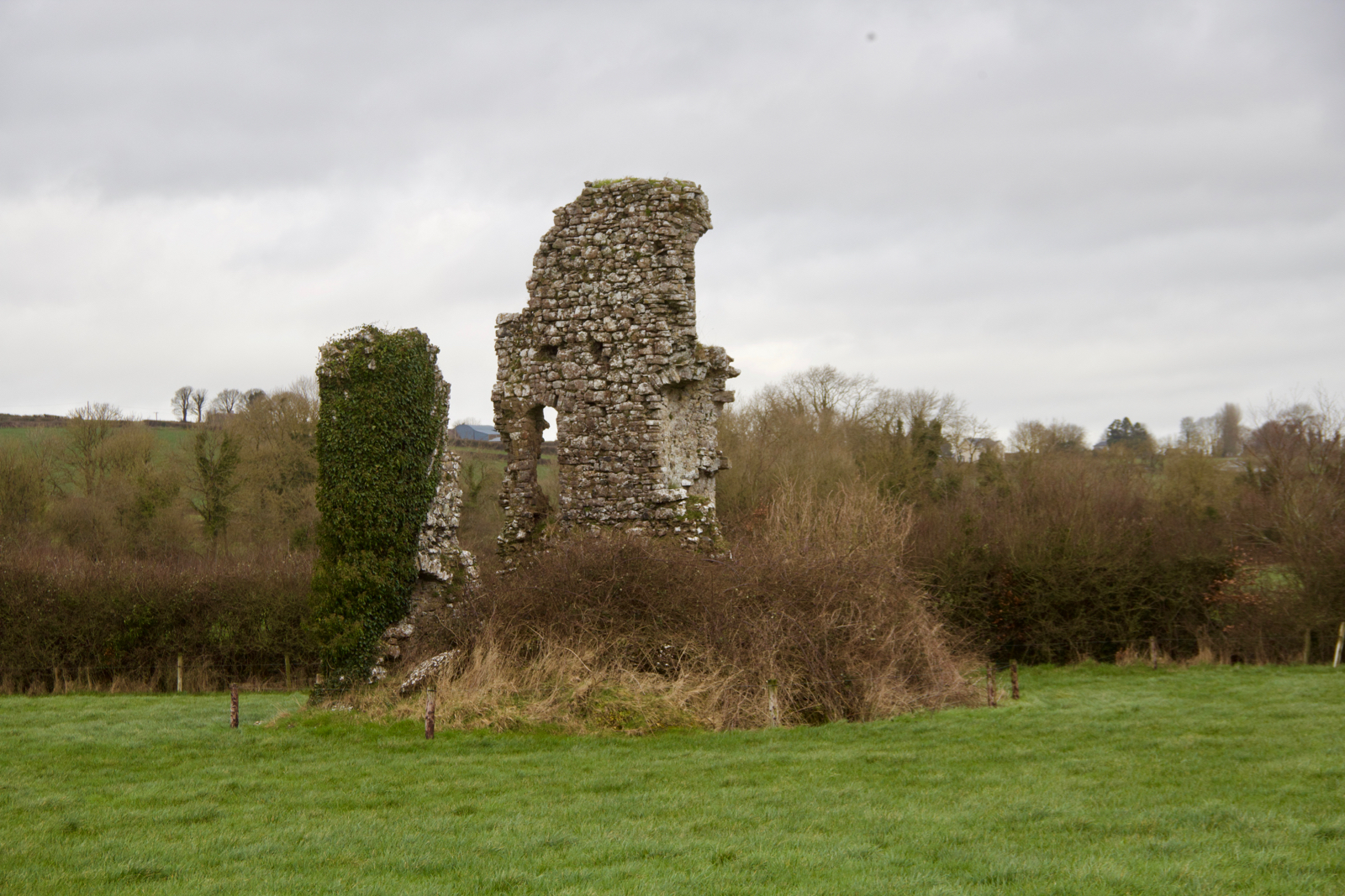 This foundation is all that remains of Ballymore Castle – there is now a barn inside. The owner very kindly let me look around: